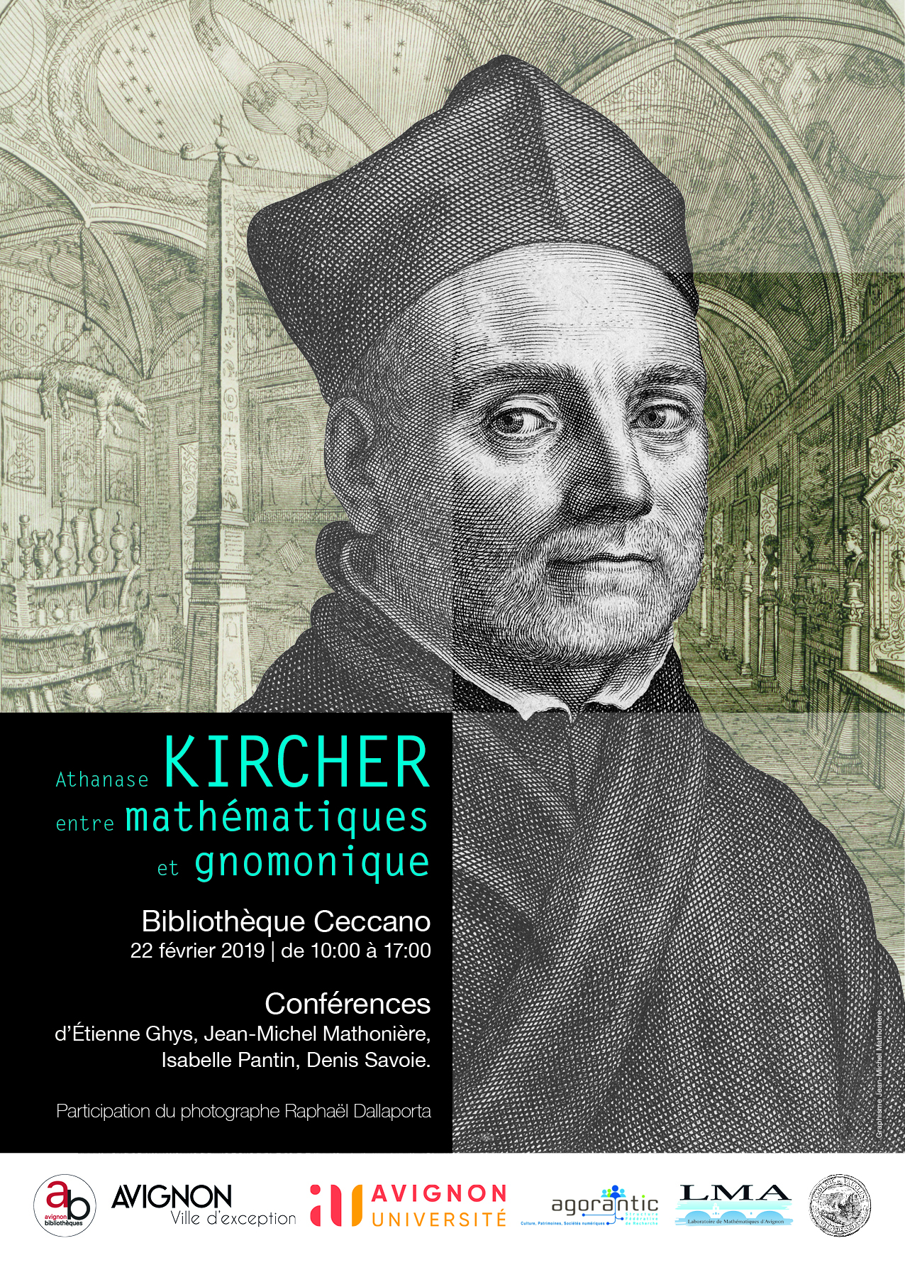 - Le Laboratoire de Mathématiques d’Avignon (LMA) et la Structure Fédérative de Recherche AGORANTIC de l’Université d’Avignon organisent le 22 février 2019 un colloque d’une journée autour d’Athanase Kircher (1602-1680), jésuite et érudit, un des scientifiques les plus importants de l’époque baroque. Voir suite et Affiche .